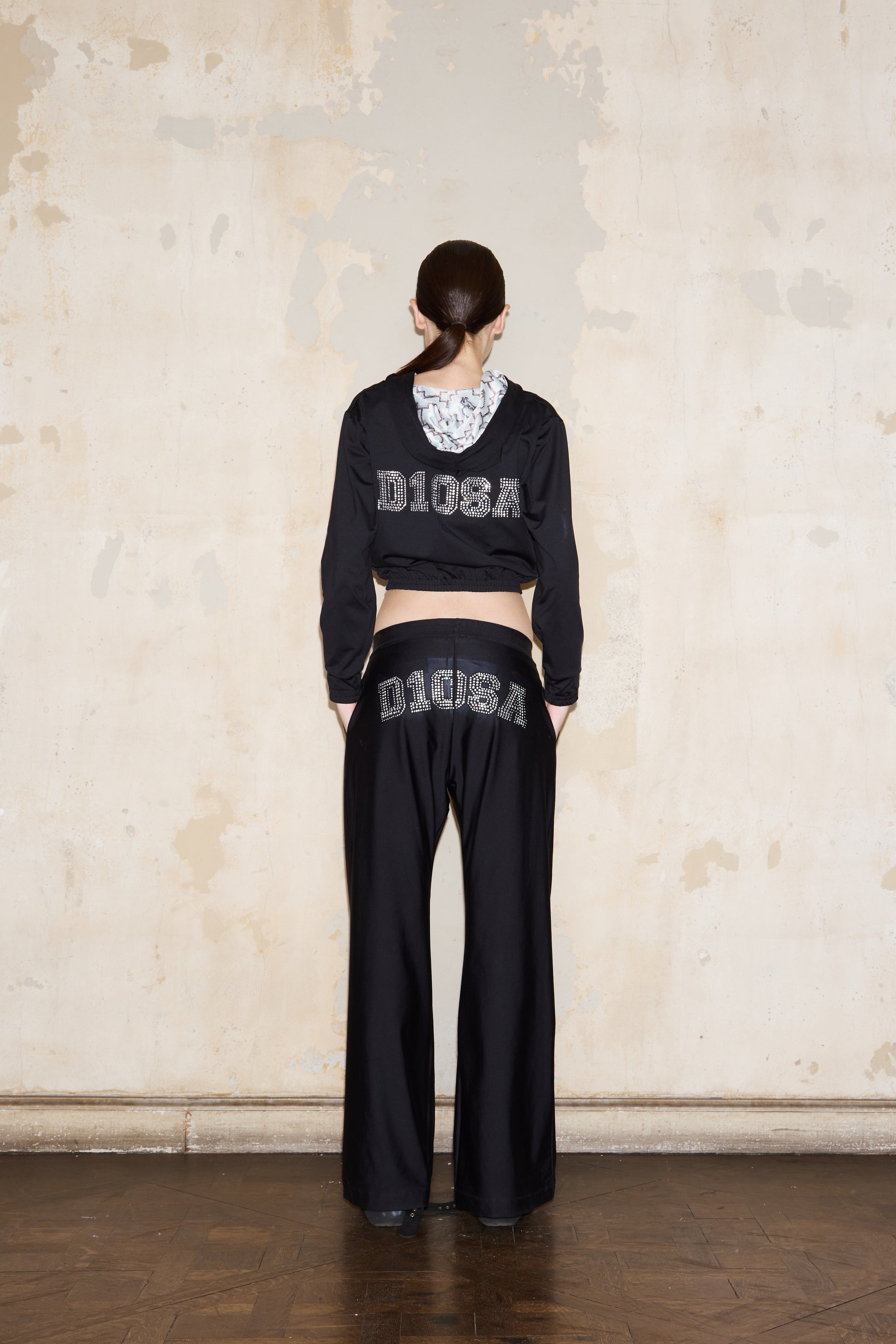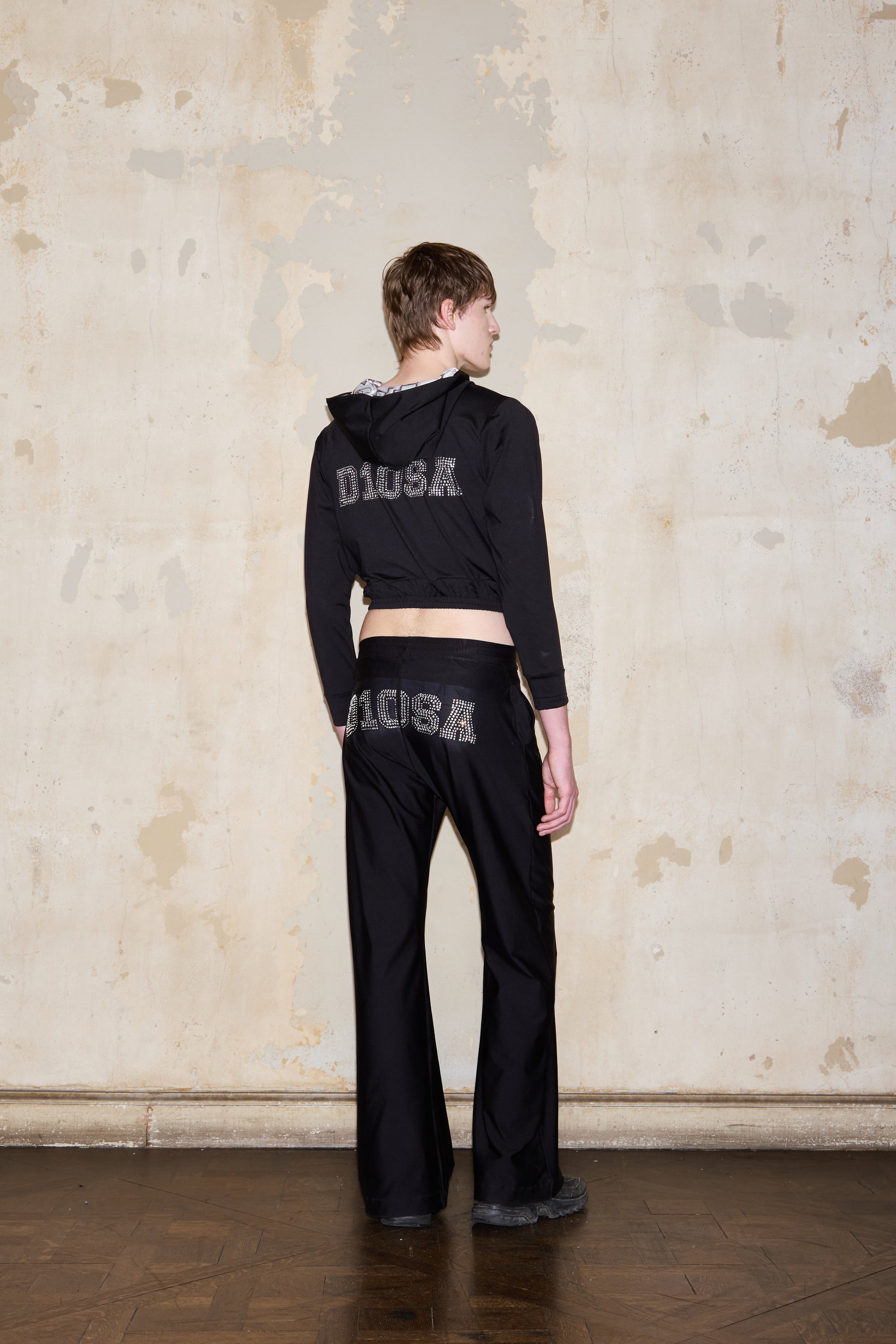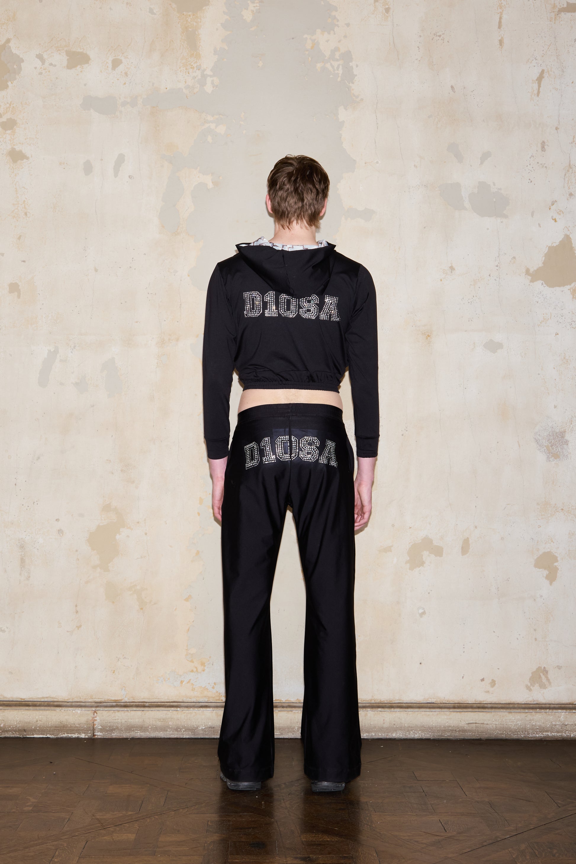 Cropped hoodie lined with exclusive ESQUINA sten print. The back features the inscription "D10SA" in rhinestones.