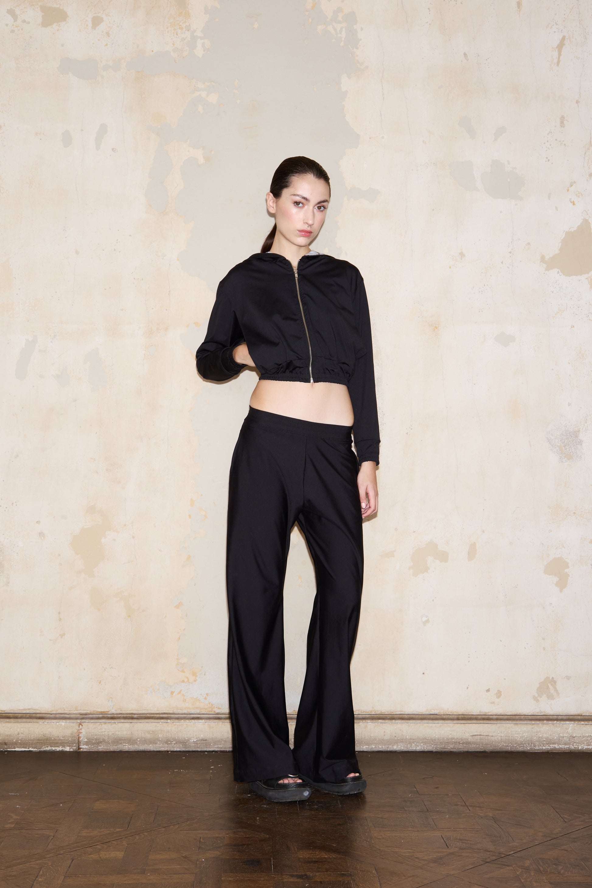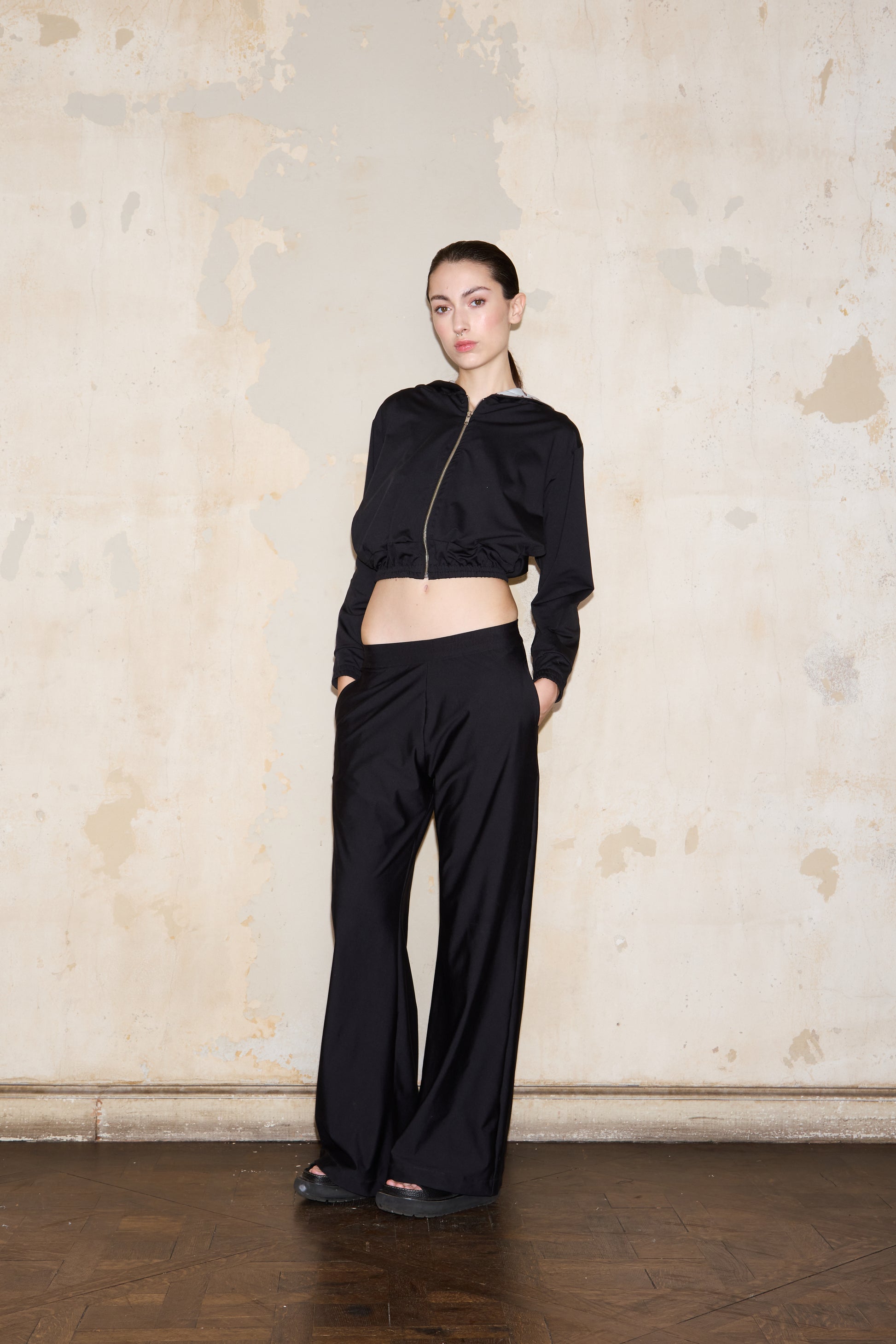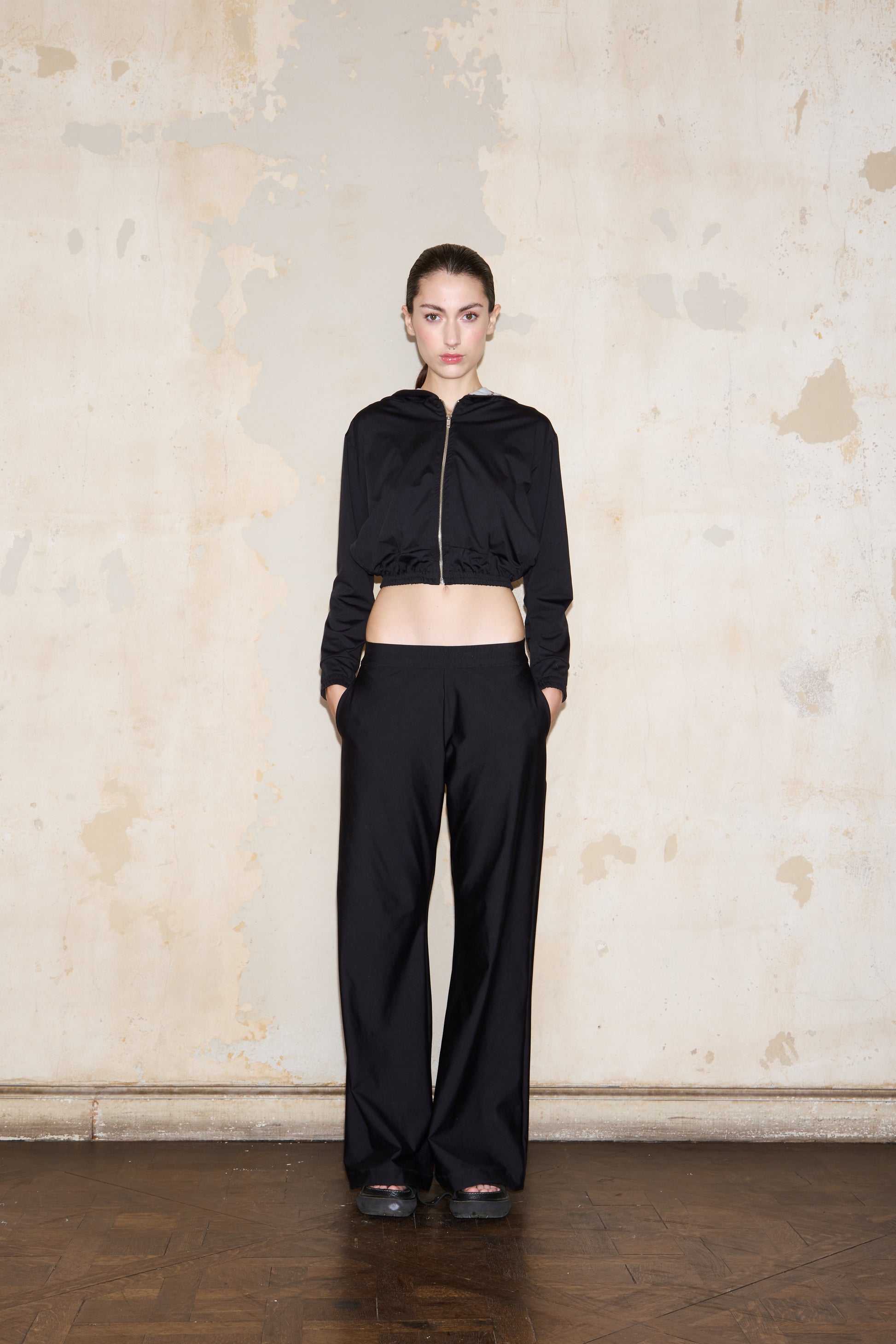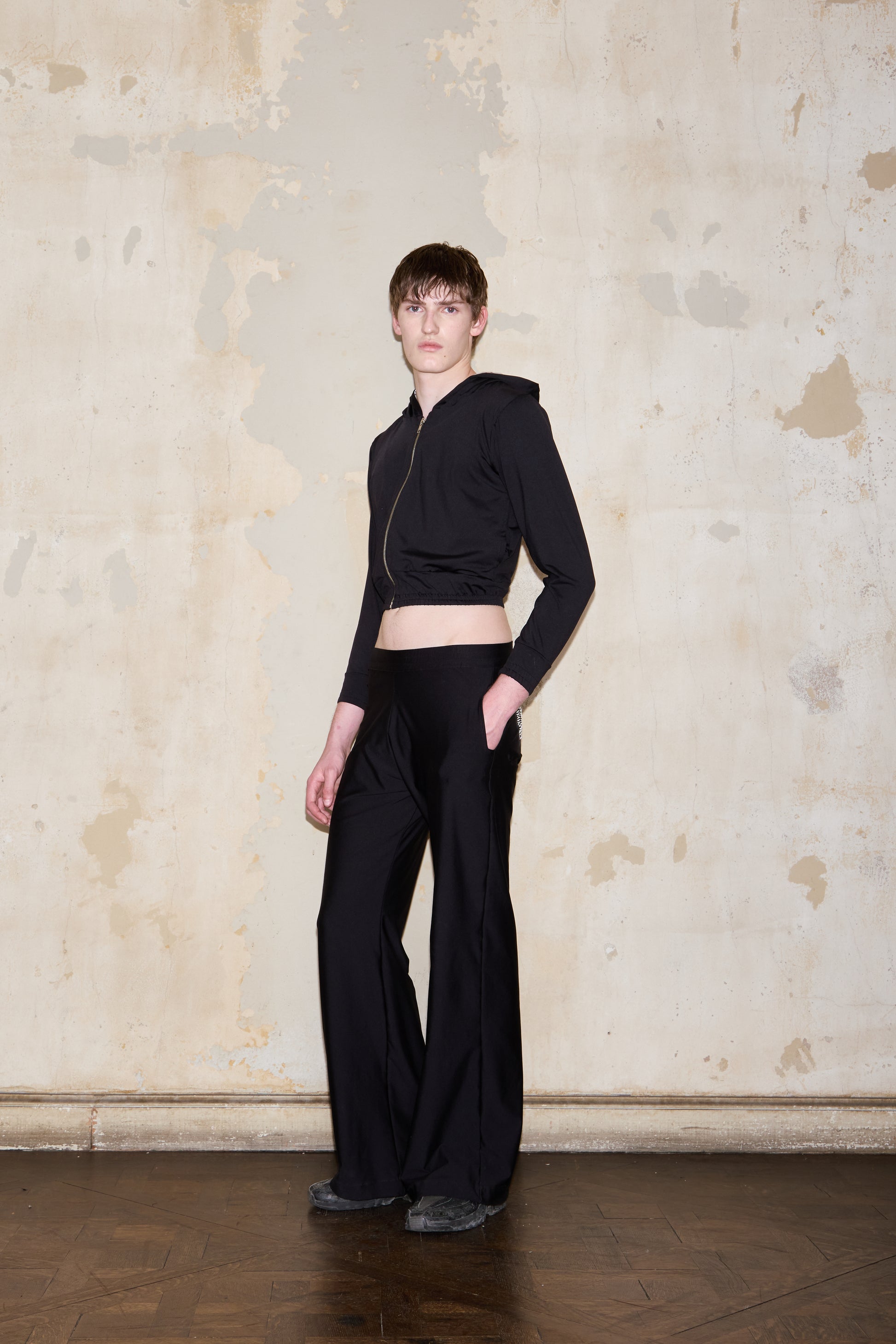 Cropped hoodie lined with exclusive ESQUINA sten print. The back features the inscription "D10SA" in rhinestones.