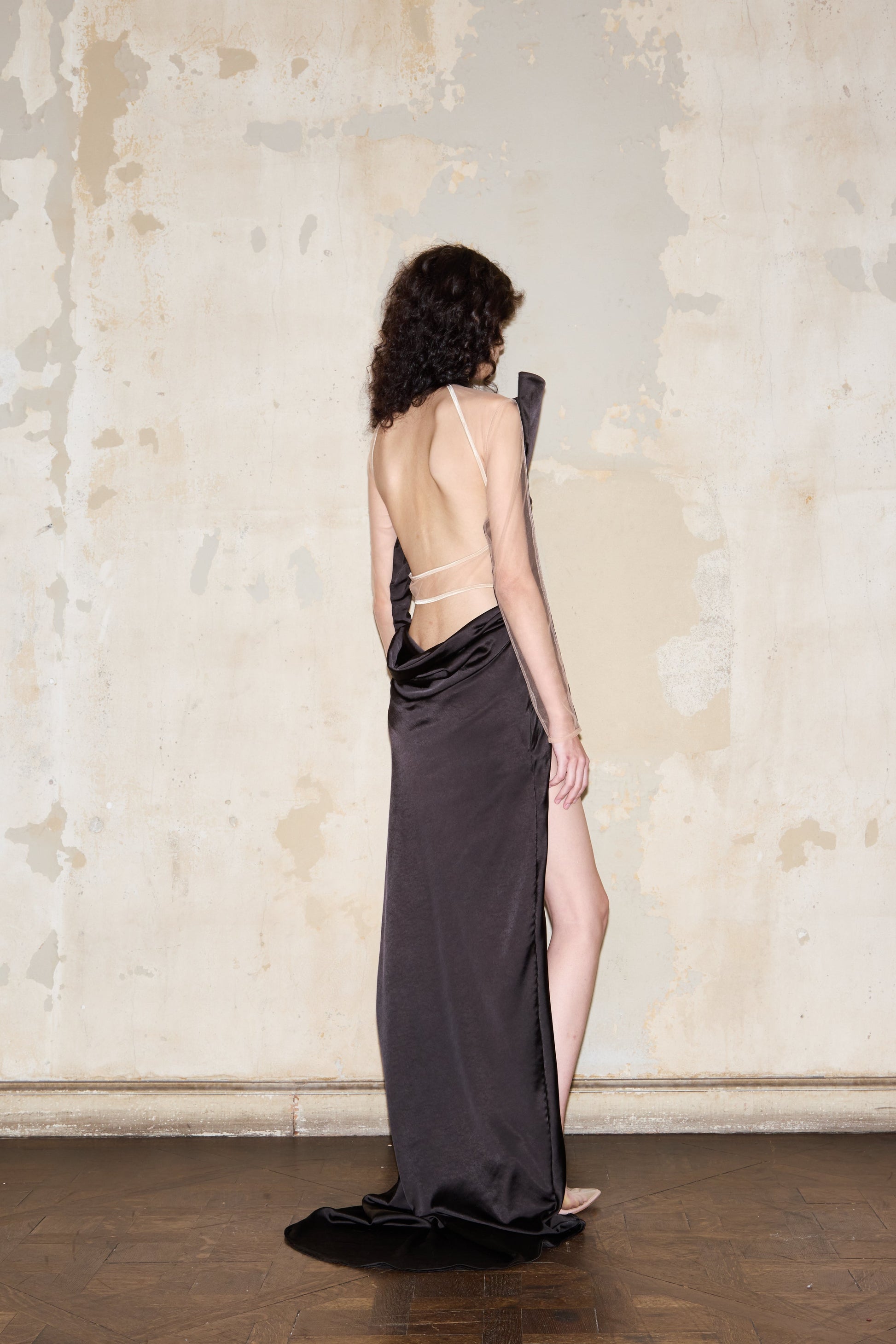 Crafted from luxurious satin and mesh fabrics. Professional cleaning recommended. Model Dallene stands 5'8" and wears size S.