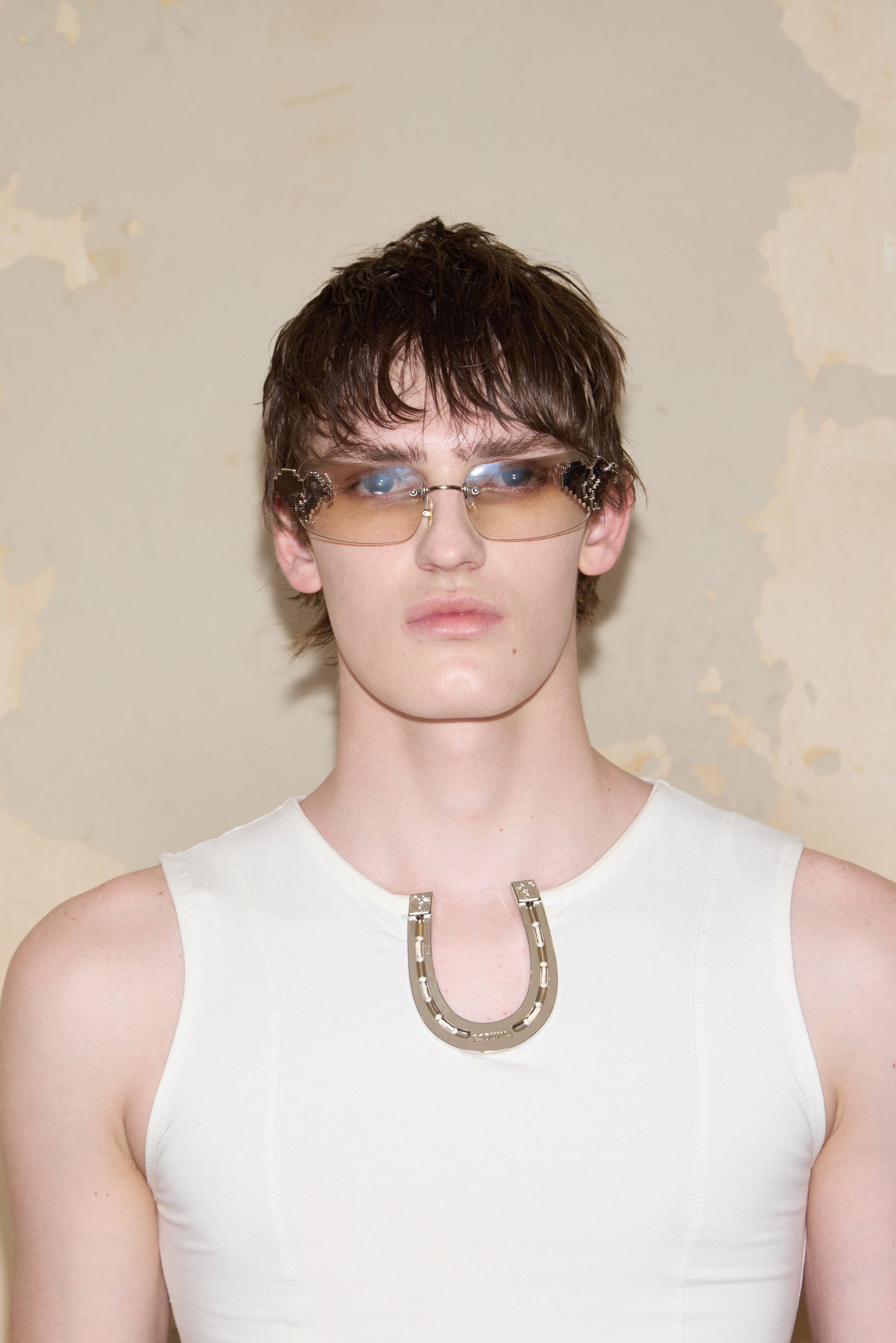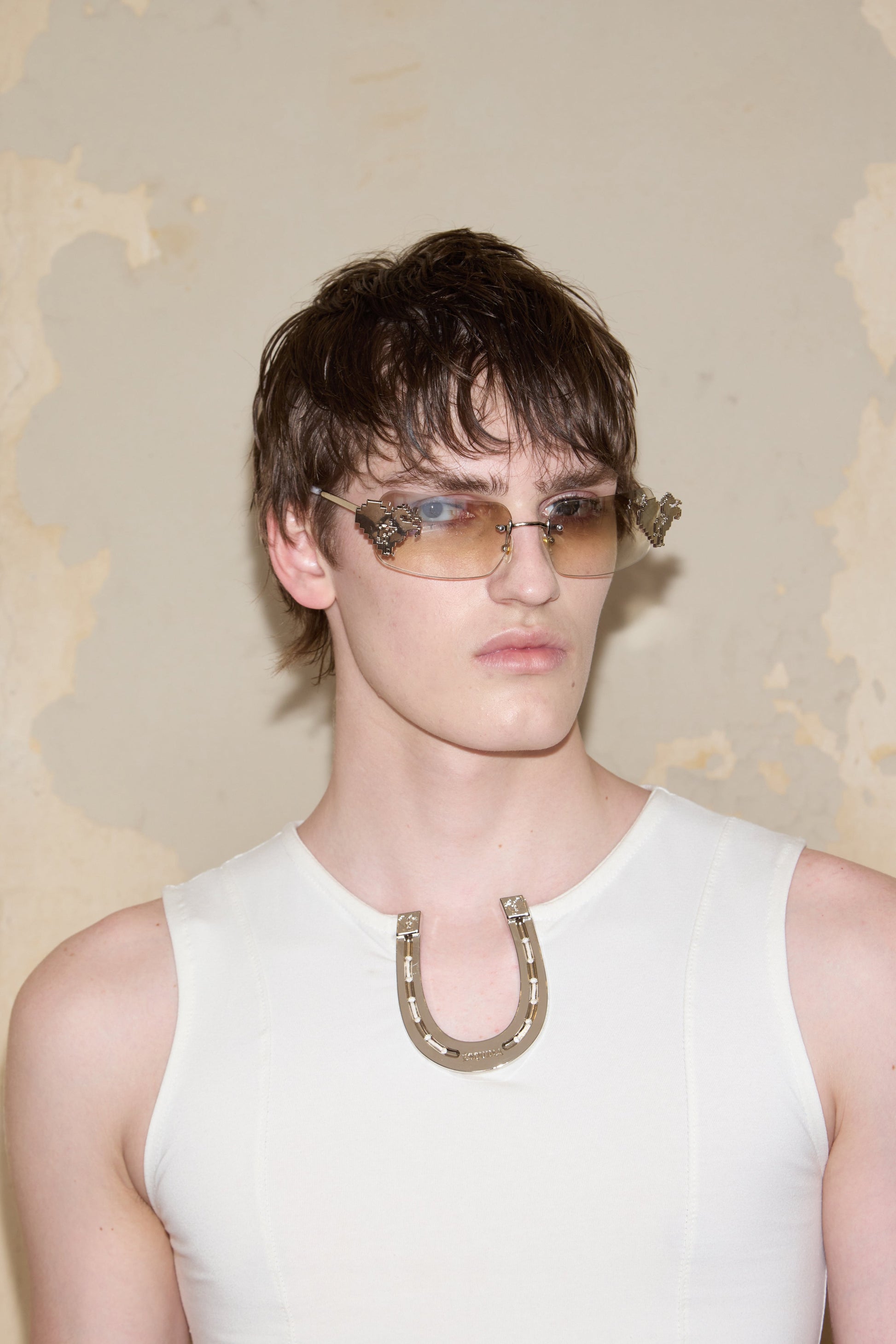 Sleeveless boat neck t-shirt with ESQUINA horseshoe detail. Made from cotton with lycra.