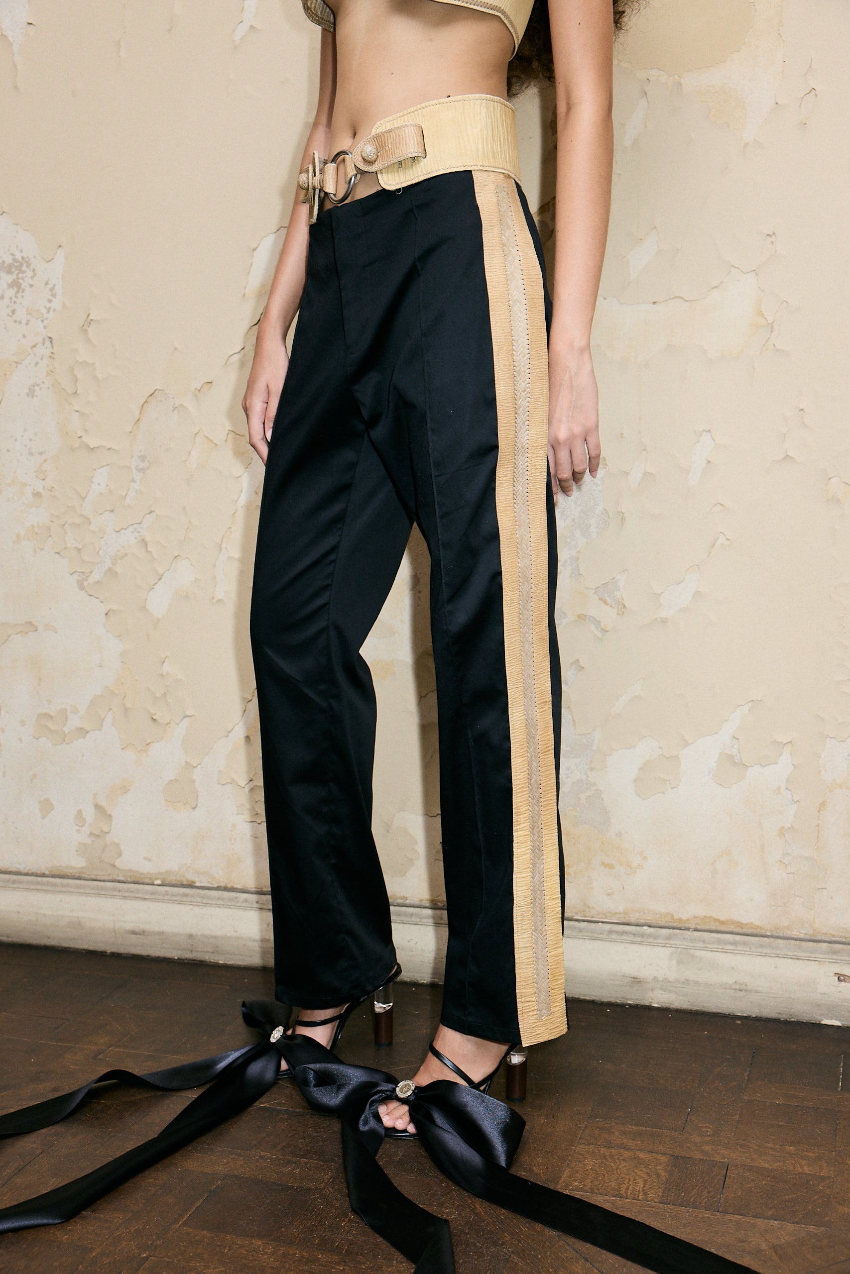 Artisanal pants inspired by the traditional Sogueria Criolla technique commonly used in gaucho-inspired belts. Made by the master stringer Jeronimo Coll.