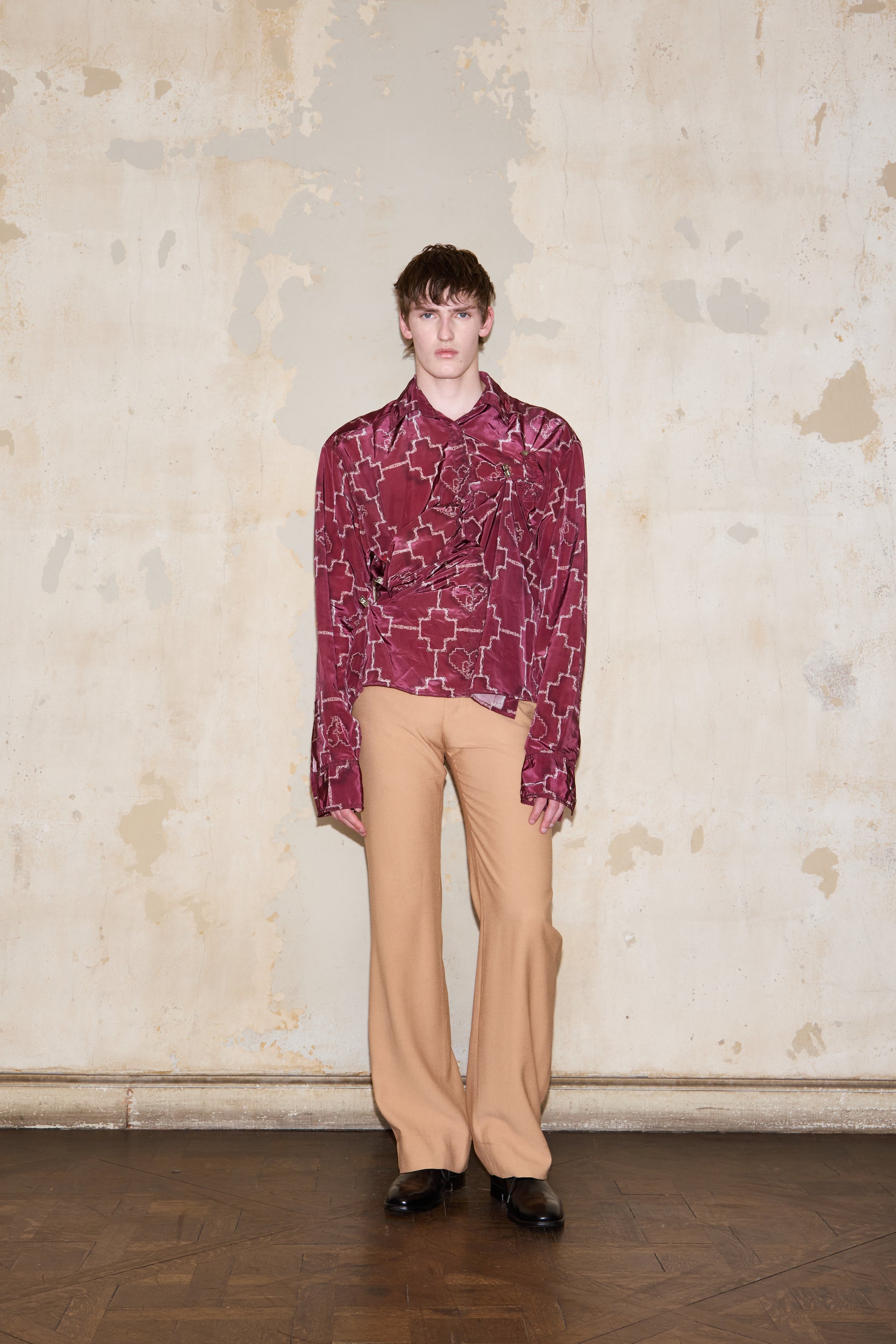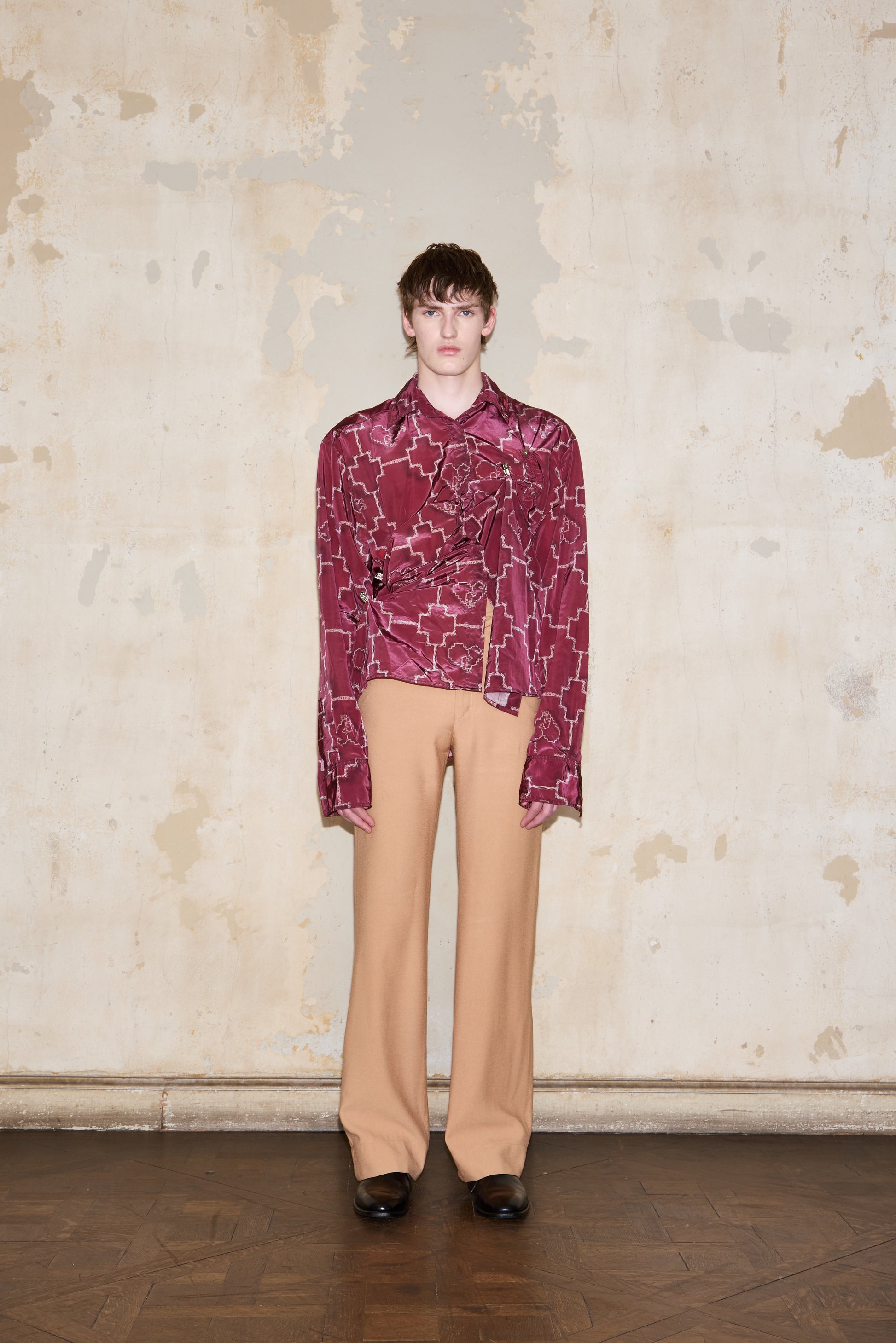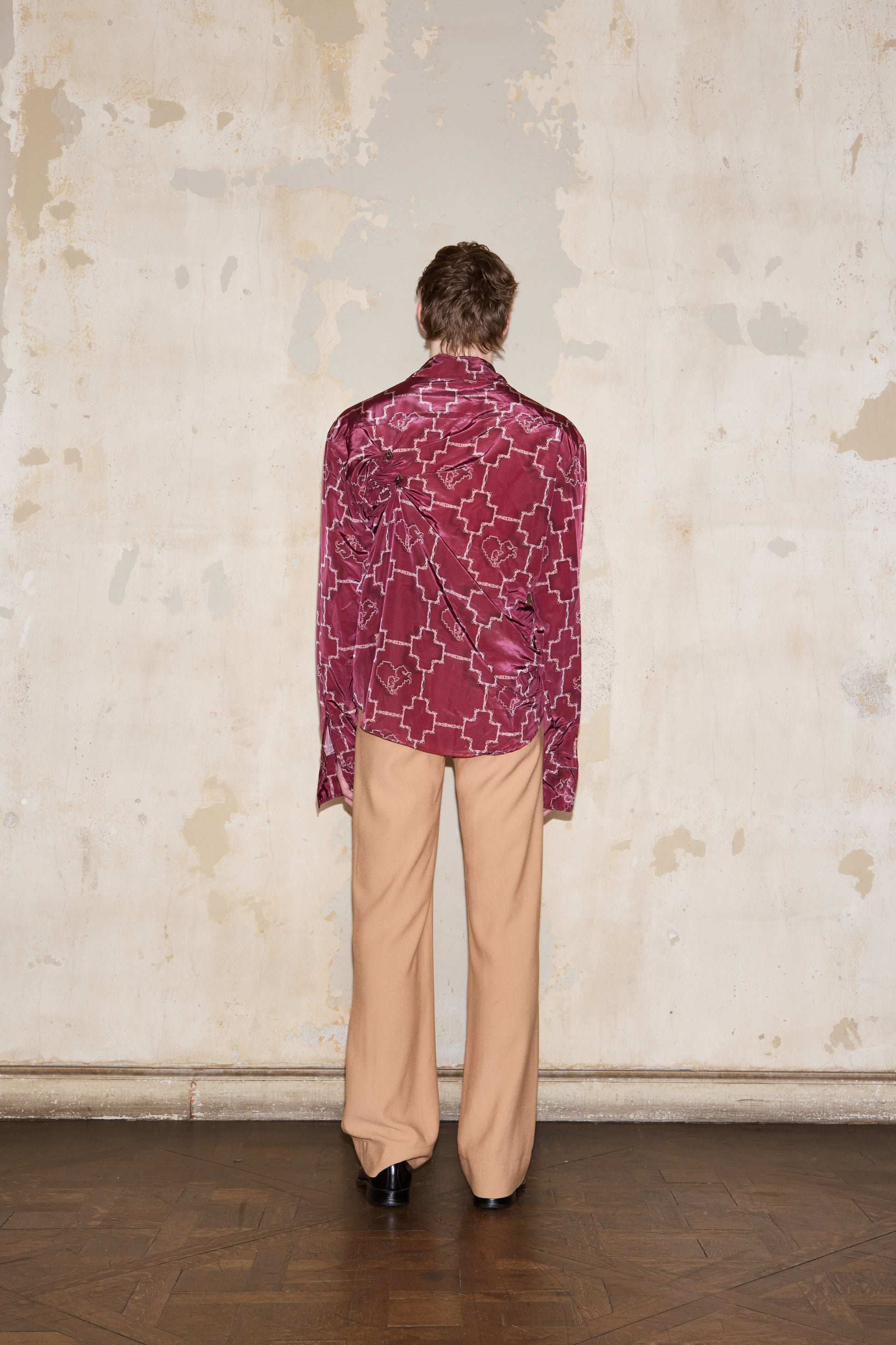Genderless oversized shirt that can be styled in two ways: used with the ESQUINA horseshoes to drape it or wear it alone for a classic look. Featuring exclusive brand's print inspired by the sogueria criolla technique.