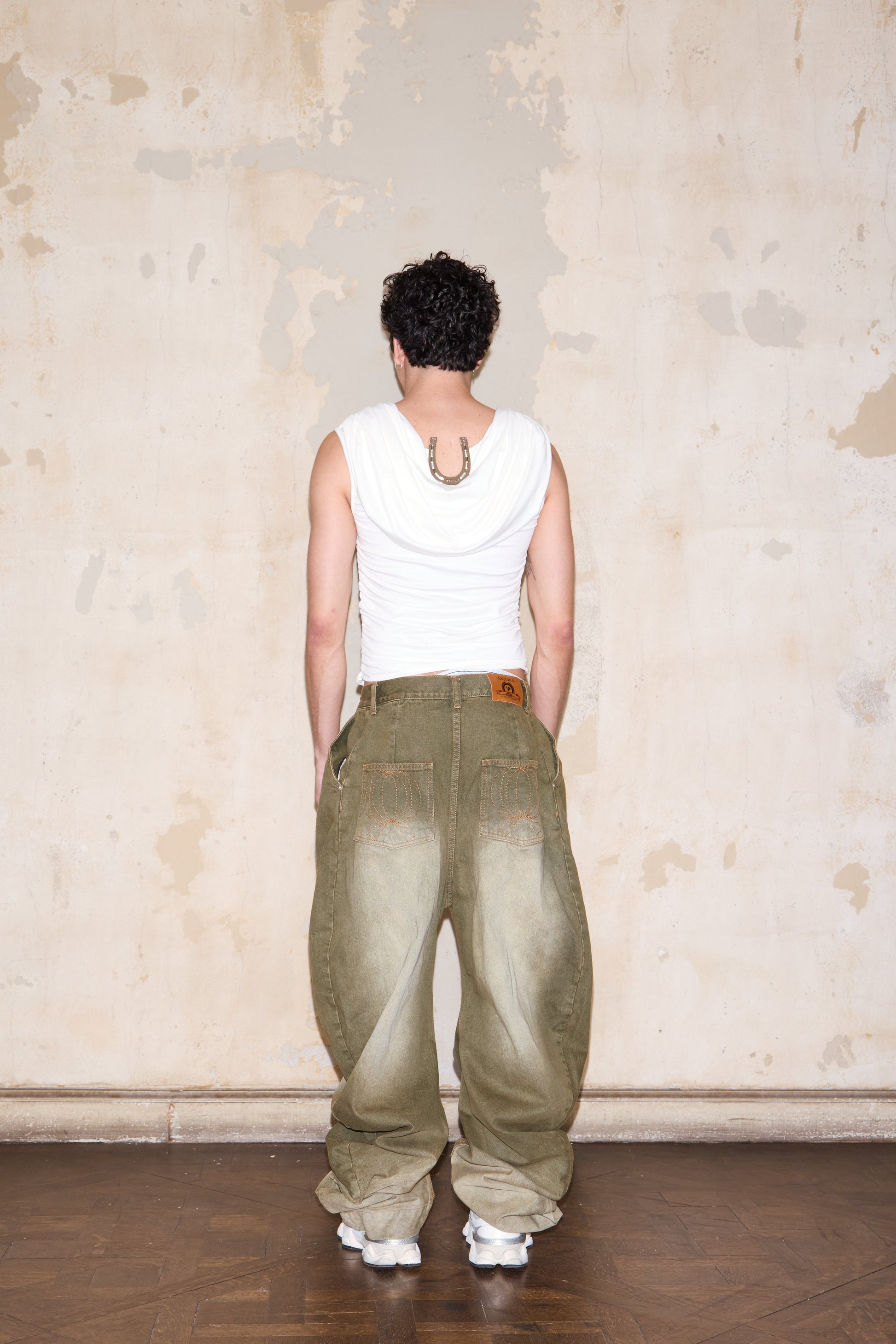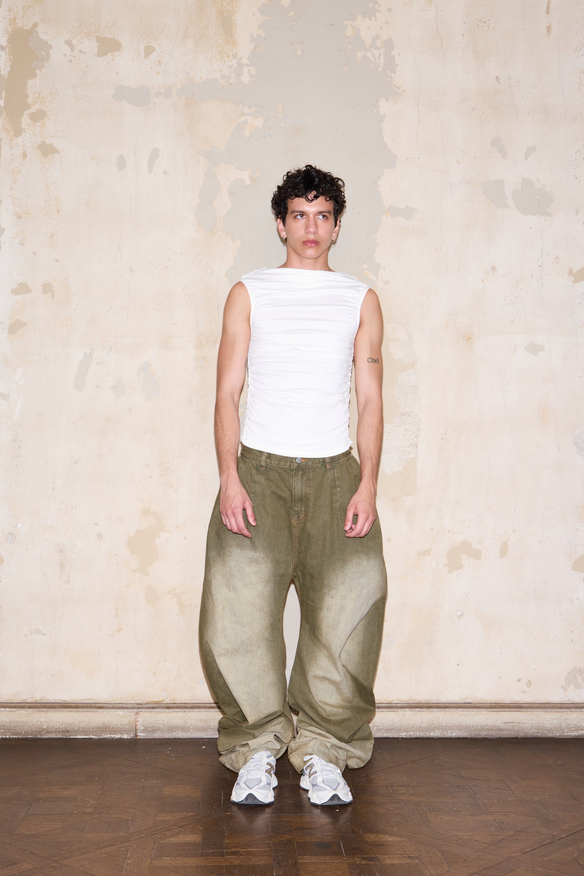 Remera drapeada con cuello a la base y sin mangas. Espalda con escote volcado y detalle de herradura chica ESQUINA
