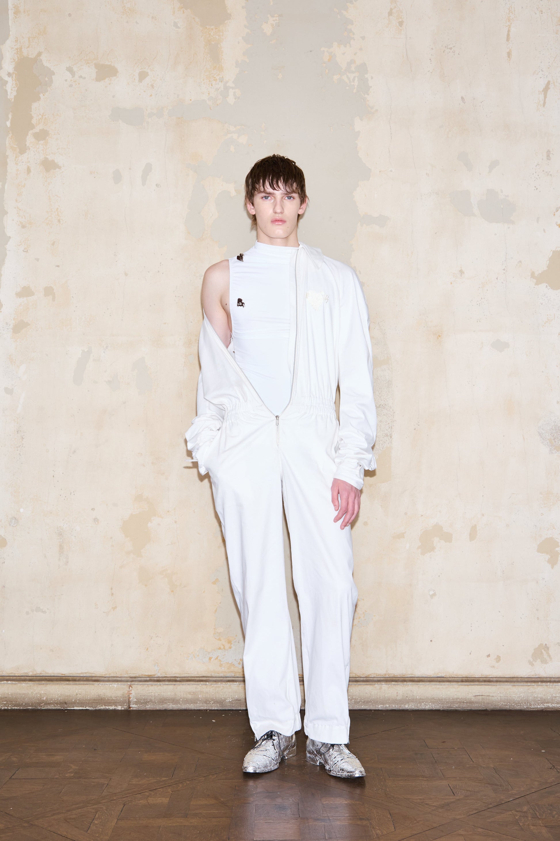 Luna, who is 5'9" tall, is wearing size S, and Alejo, who is 6'2" tall, is also wearing size S.