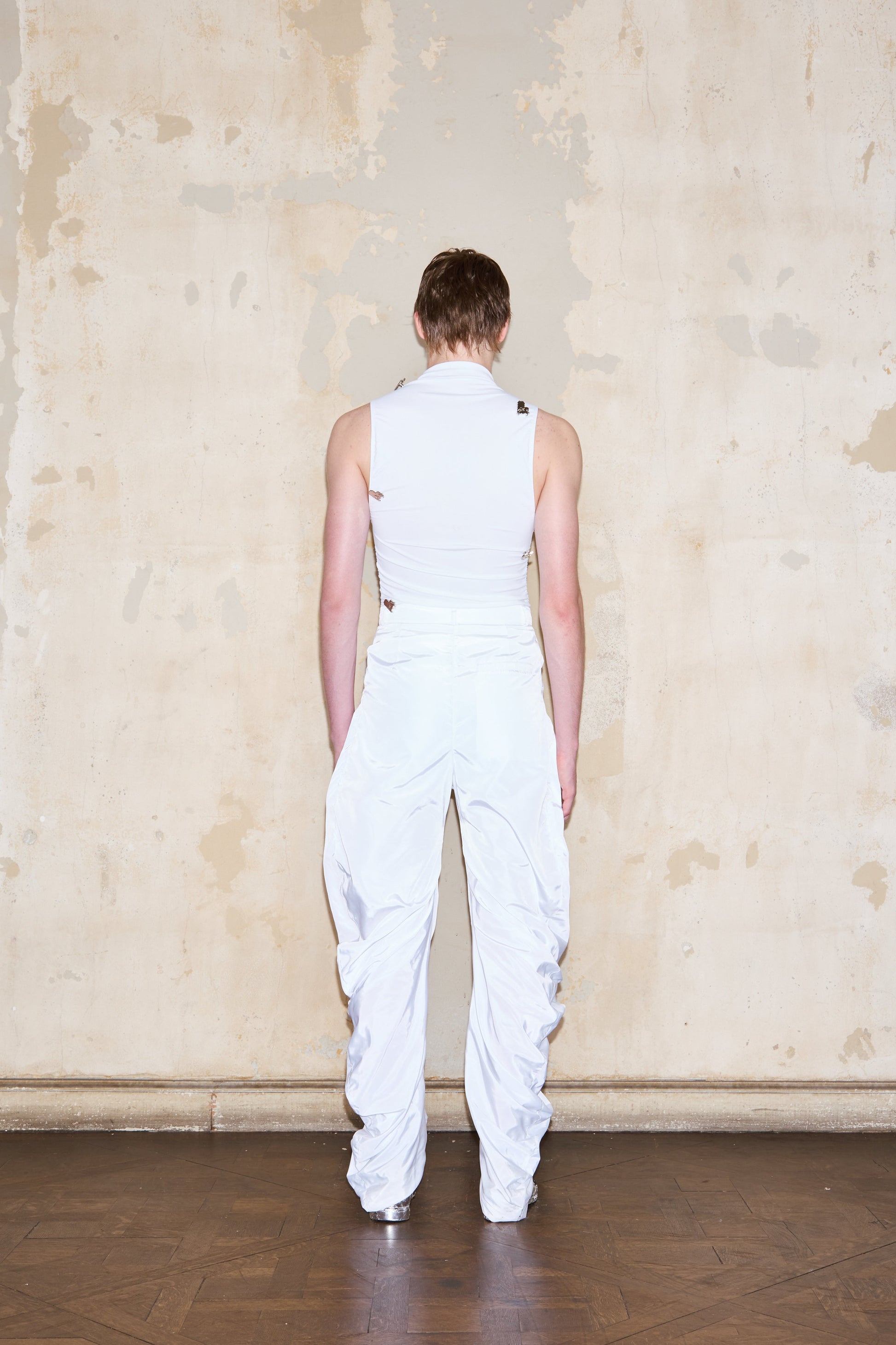 This fitted tank top features draping along the sides and Zemac ESQUINA logo details.